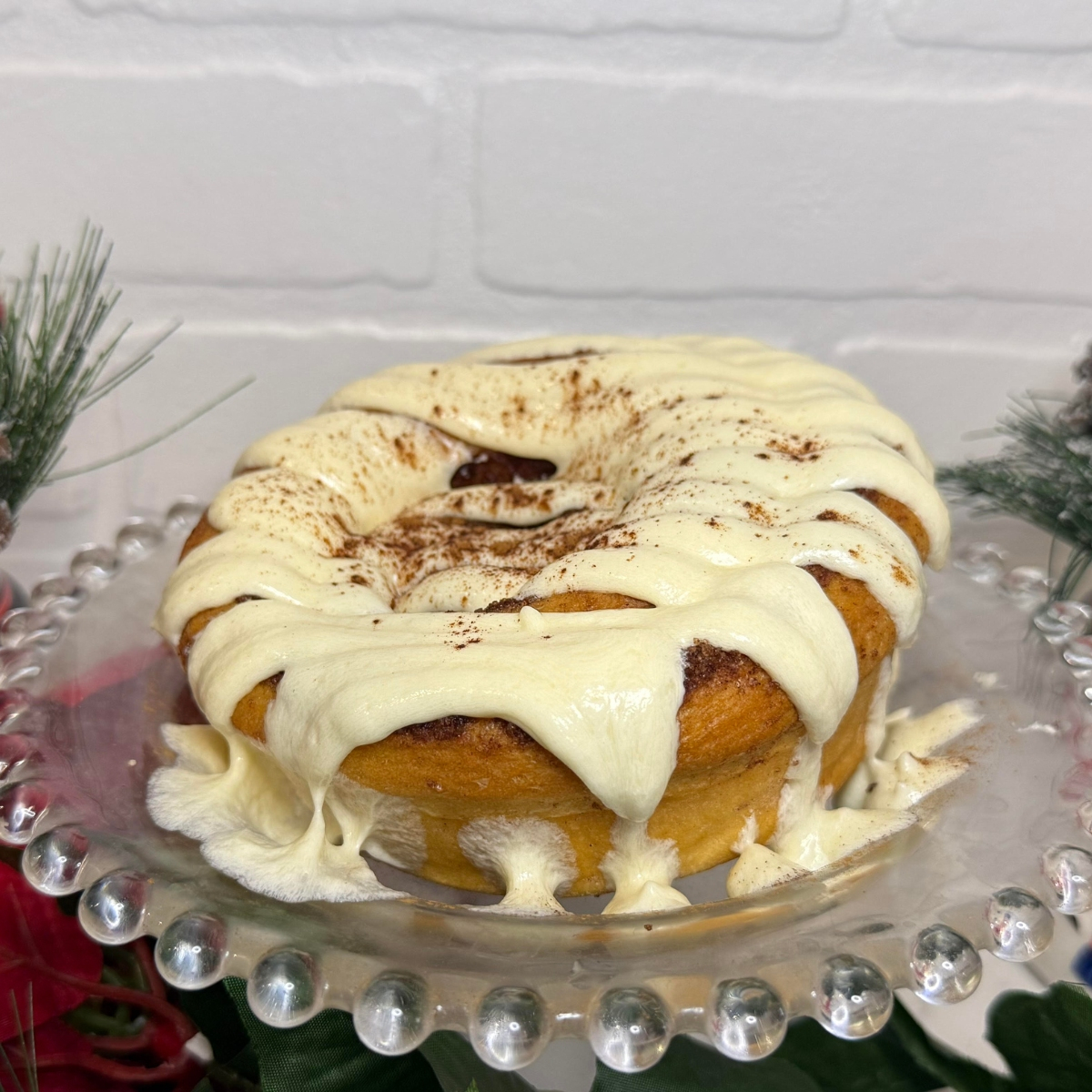 JUMBO 12OZ CINNAMON ROLL NUTRITION FACTS: Servings per container 12. Serving Size: 1/2 Unfrosted Roll (170g), Amount per Serving: Calories 320, Total Fat 7g (9% DV), Saturated Fat 0g, Trans Fat 0g, Cholesterol 30mg (10% DV), Sodium 340mg (15% DV), Dietary Fiber 2g (7% DV), Total Sugars 17g, includes 0g Added Sugars, Protein 6g (12% DV), Total Carbohydrates 50g (18% DV), Vitamin D 0mcg, Calcium 260mg (20% DV), Iron 2.7mg (15% DV), Potassium 188mg (4% DV).