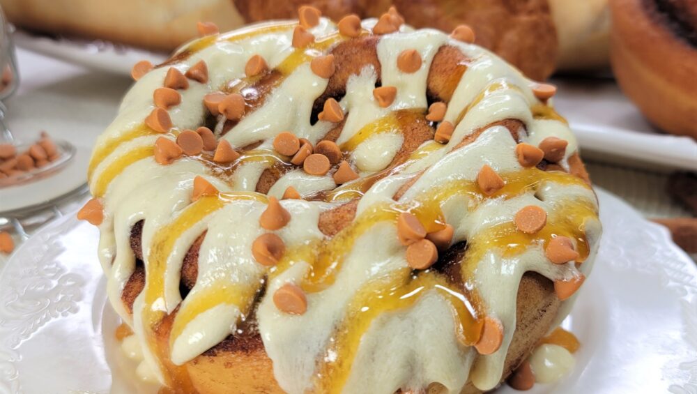 Original buttercream frosting with smooth butterscotch sauce and butterscotch morsels.
