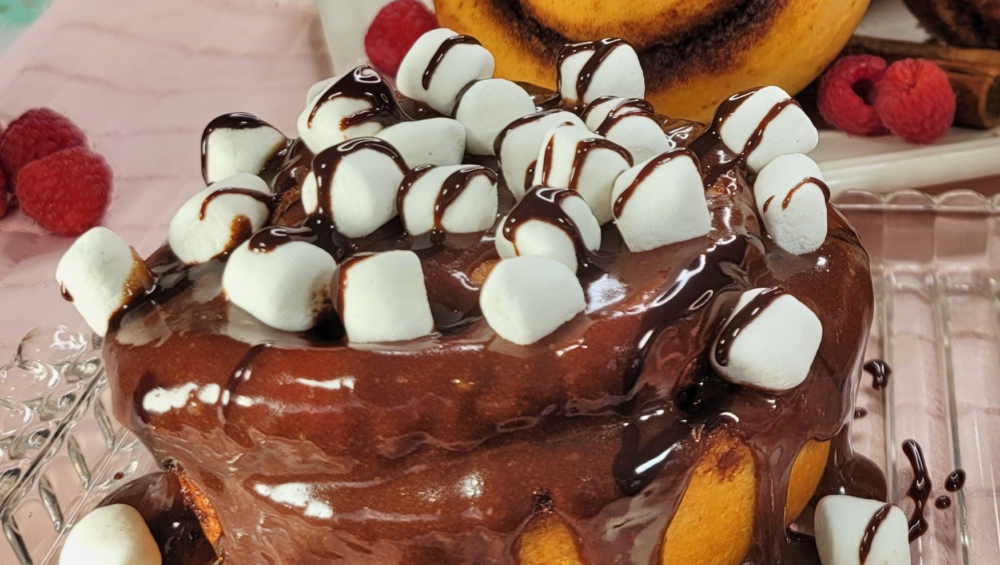 Smooth, decadent, chocolate buttercream, marshmallows and chocolate topping.