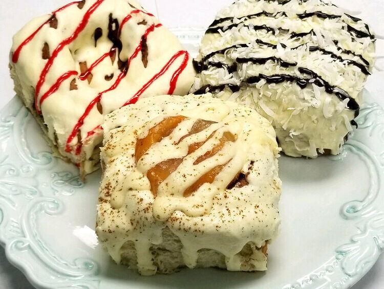 Choose any three (3) varieties for your 6-pack of jumbo rolls or 12-pack of Regular cinnamon rolls. Toppings are shipped on the side to preserve the quality of the rolls.